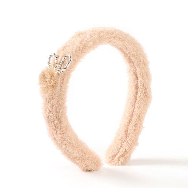 奶茶色毛球耳朵毛绒头扣