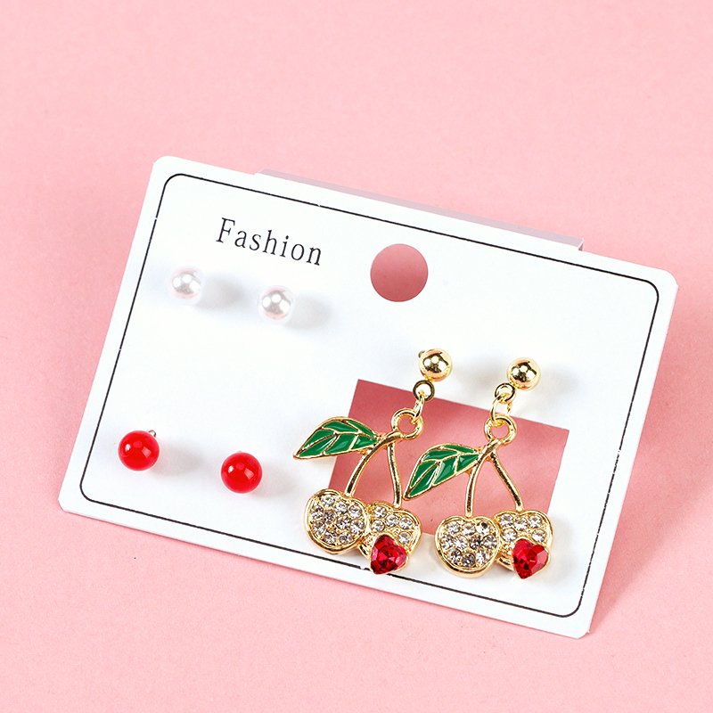 三对新款珍珠造型耳钉