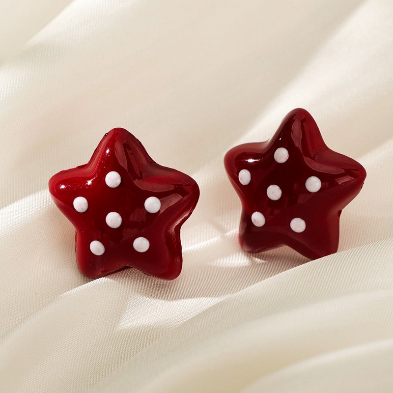 红色滴油点点耳钉